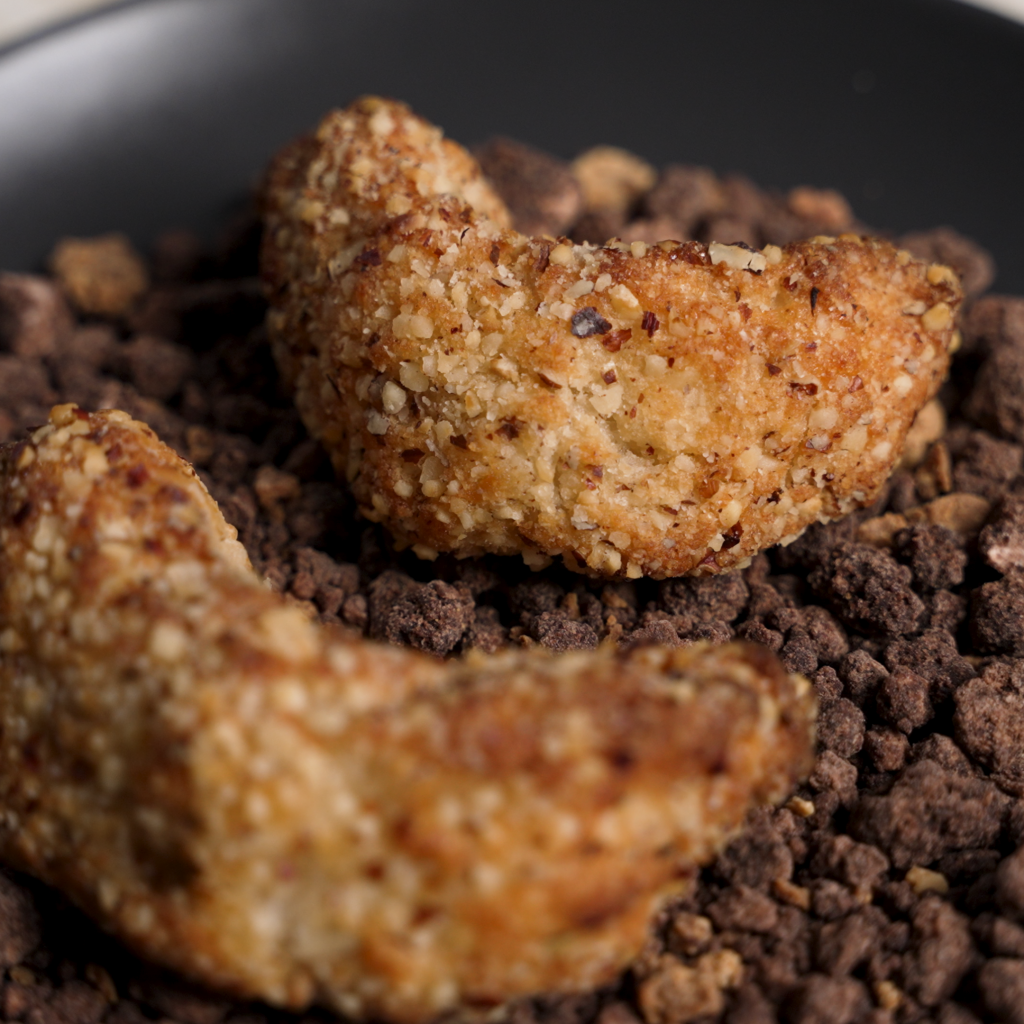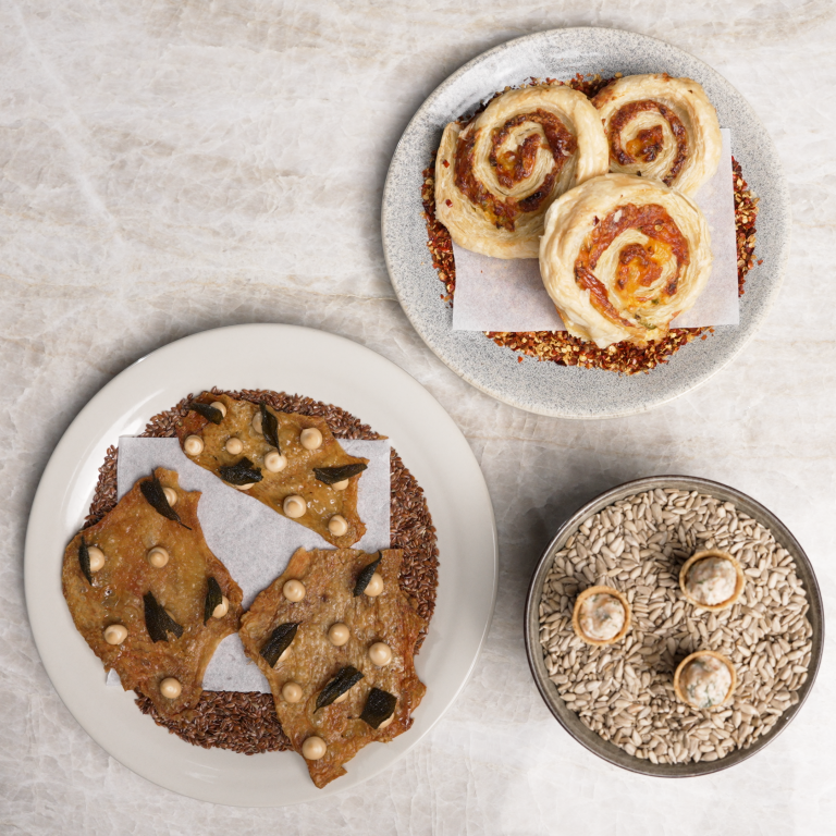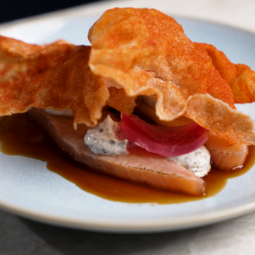 Sprødt kyllingeskind med creme på ristet sesam & sprød salvie